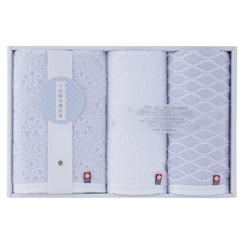 今治輪奈織紋様 あられ&つなぎ フェイスタオル3P 3,300円(税込)