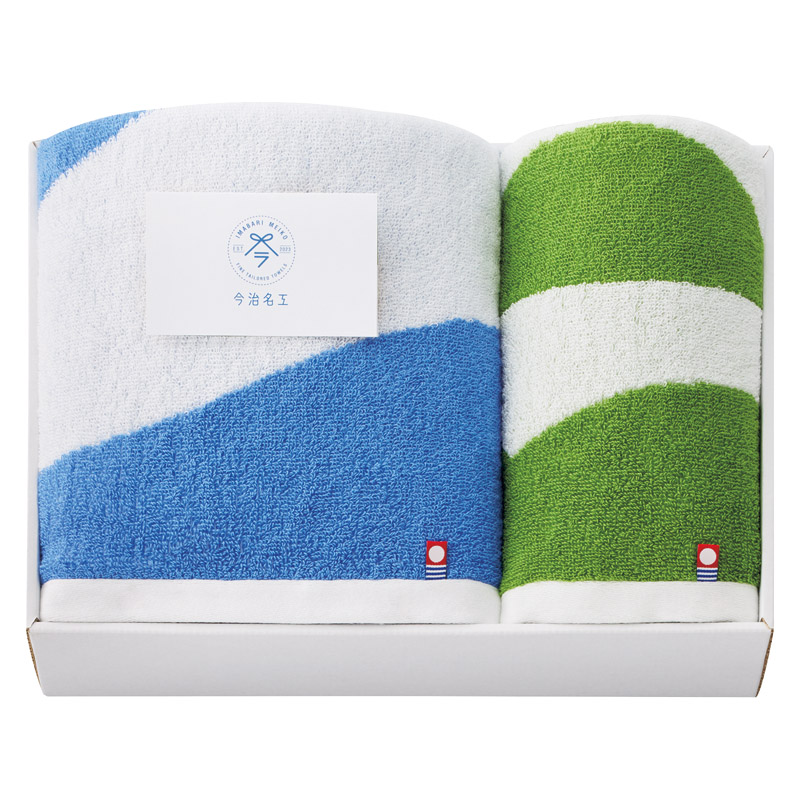 今治タオル 今治名工 バス1P・フェイスタオル1P ブルー×グリーン 5,500円(税込)
